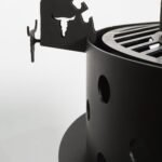 The iron fire bowl has an easy access door to add charcoal or wood for those day-long barbecues.
